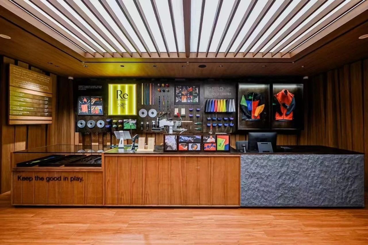 The space also includes a dedicated “Re:” space for repairs, showing Arc’teryx’s commitment to sustainability. All these elements work together to firmly connect the brand to its adventurous roots, inviting customers to not just buy products, but to truly experience the Arc’teryx lifestyle.