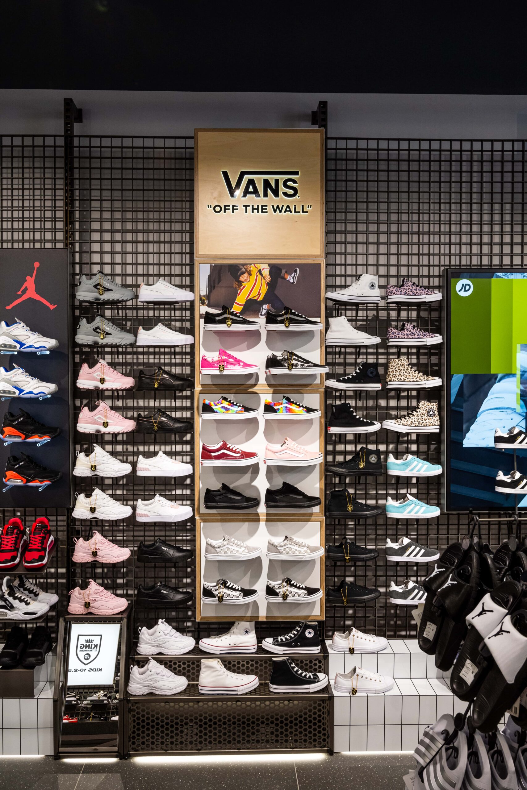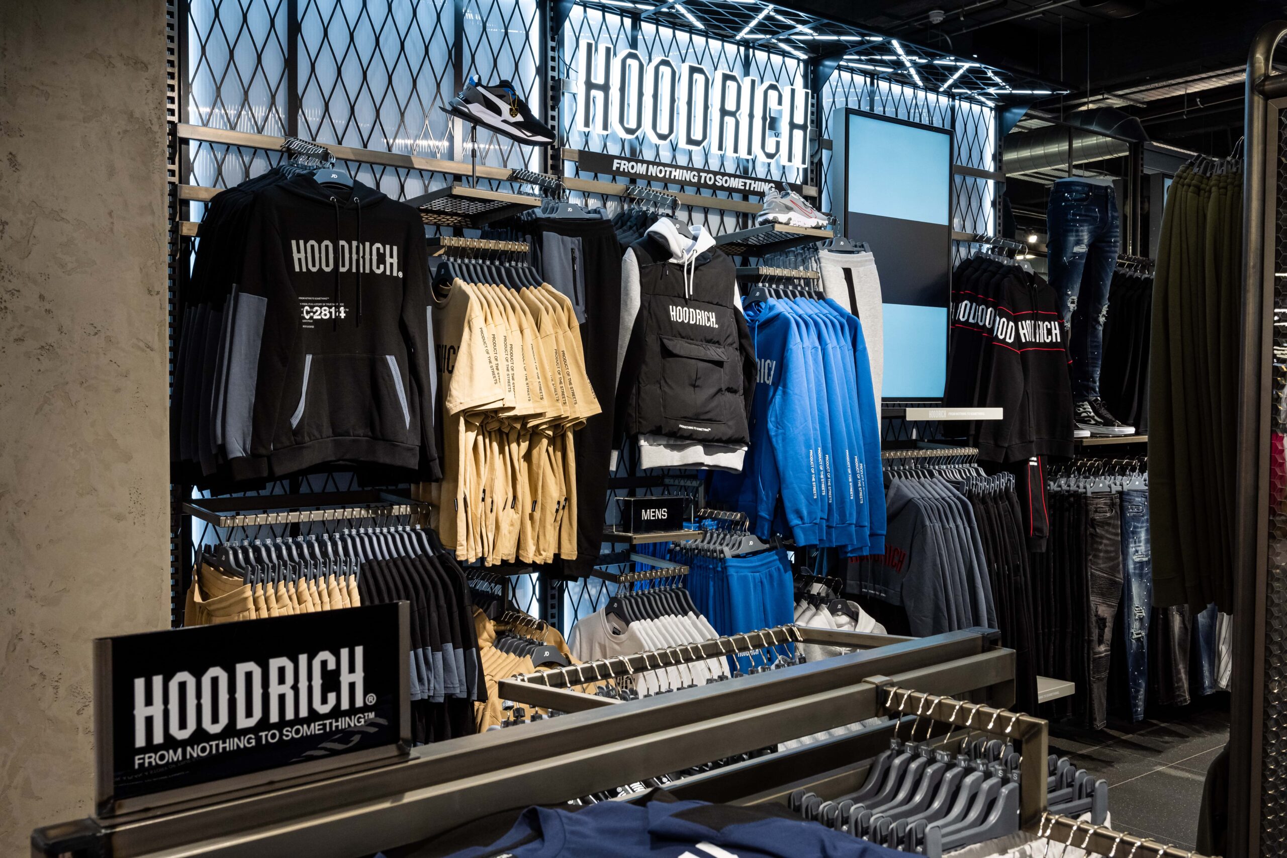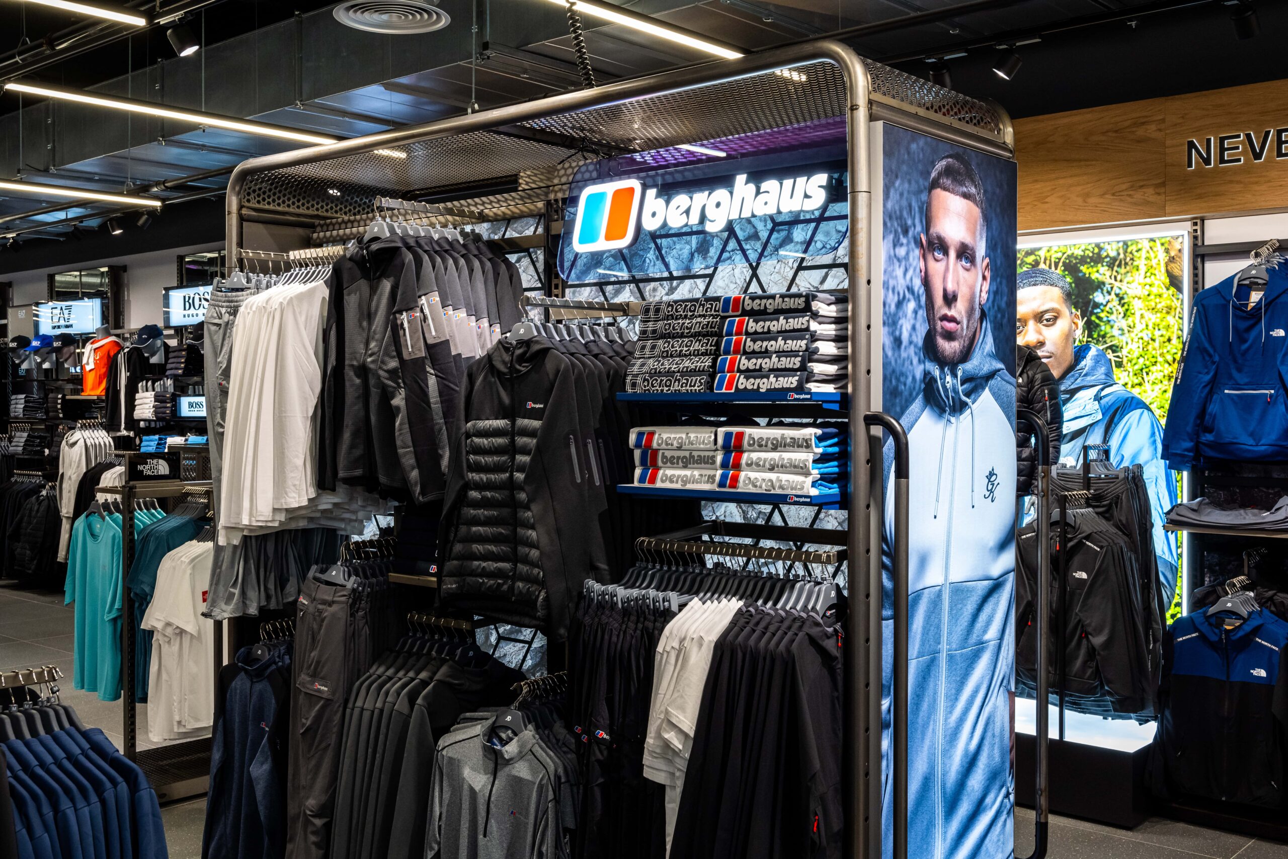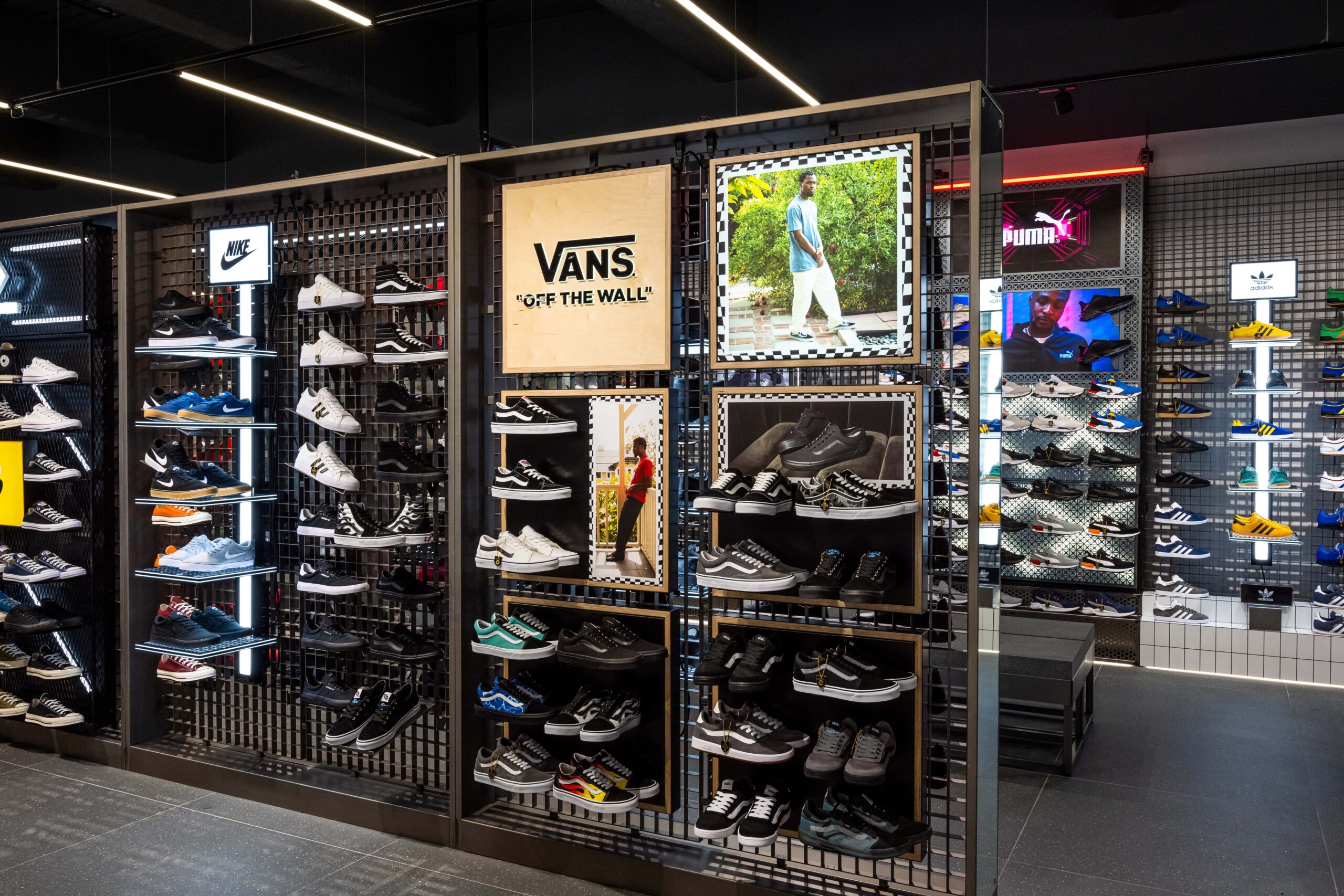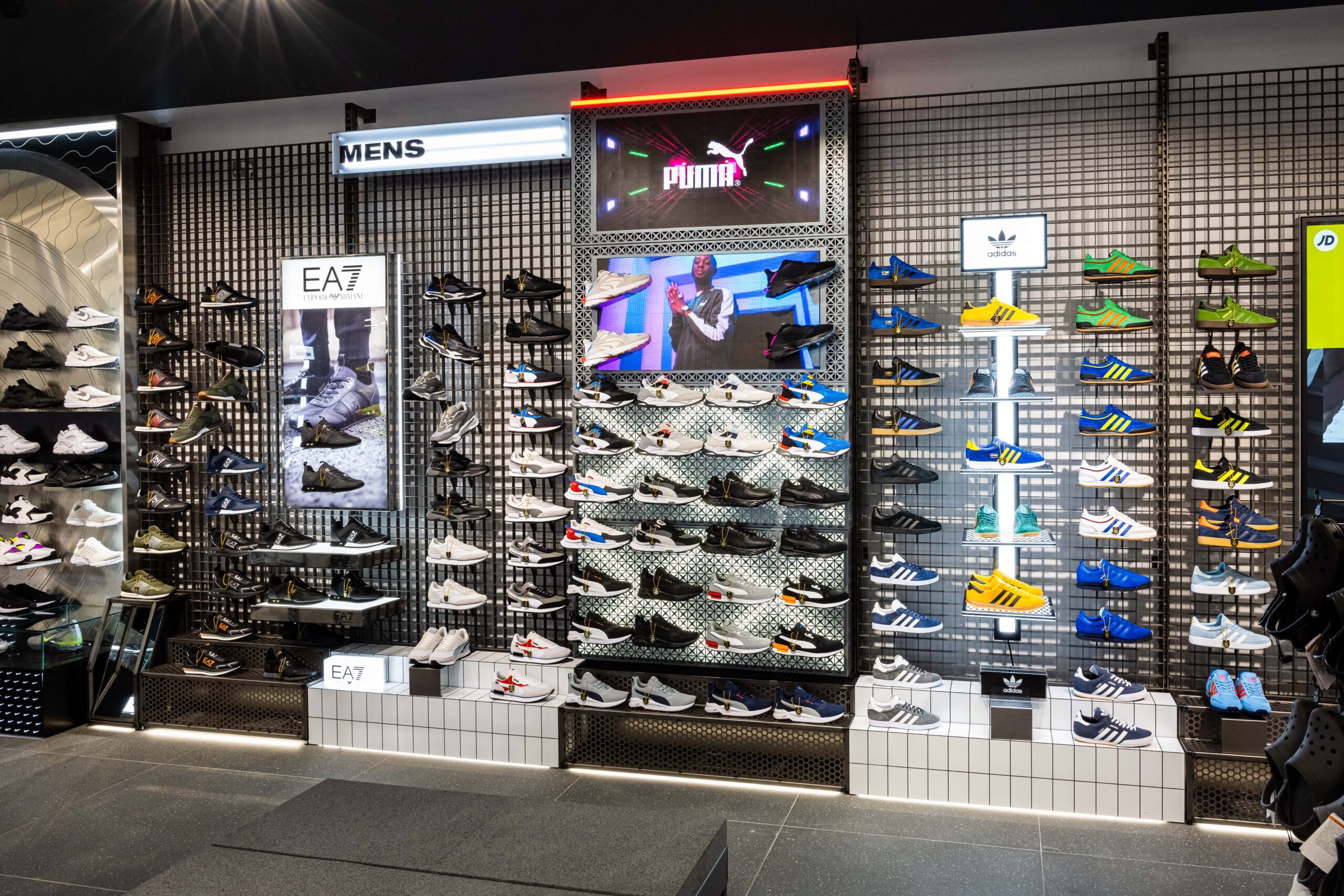 Bringing a sense of exploration to the shopping journey through its ticker-tape signage and futuristic-style screens displaying cinematic media, this ultramodern store concept is one of adventure and discovery. Making up its bold, statement design is a series of branded zones, many of which d4r had the pleasure of being involved with – whether it was designing a footwear wall, developing an apparel wall bay, or implementing a midfloor cage.