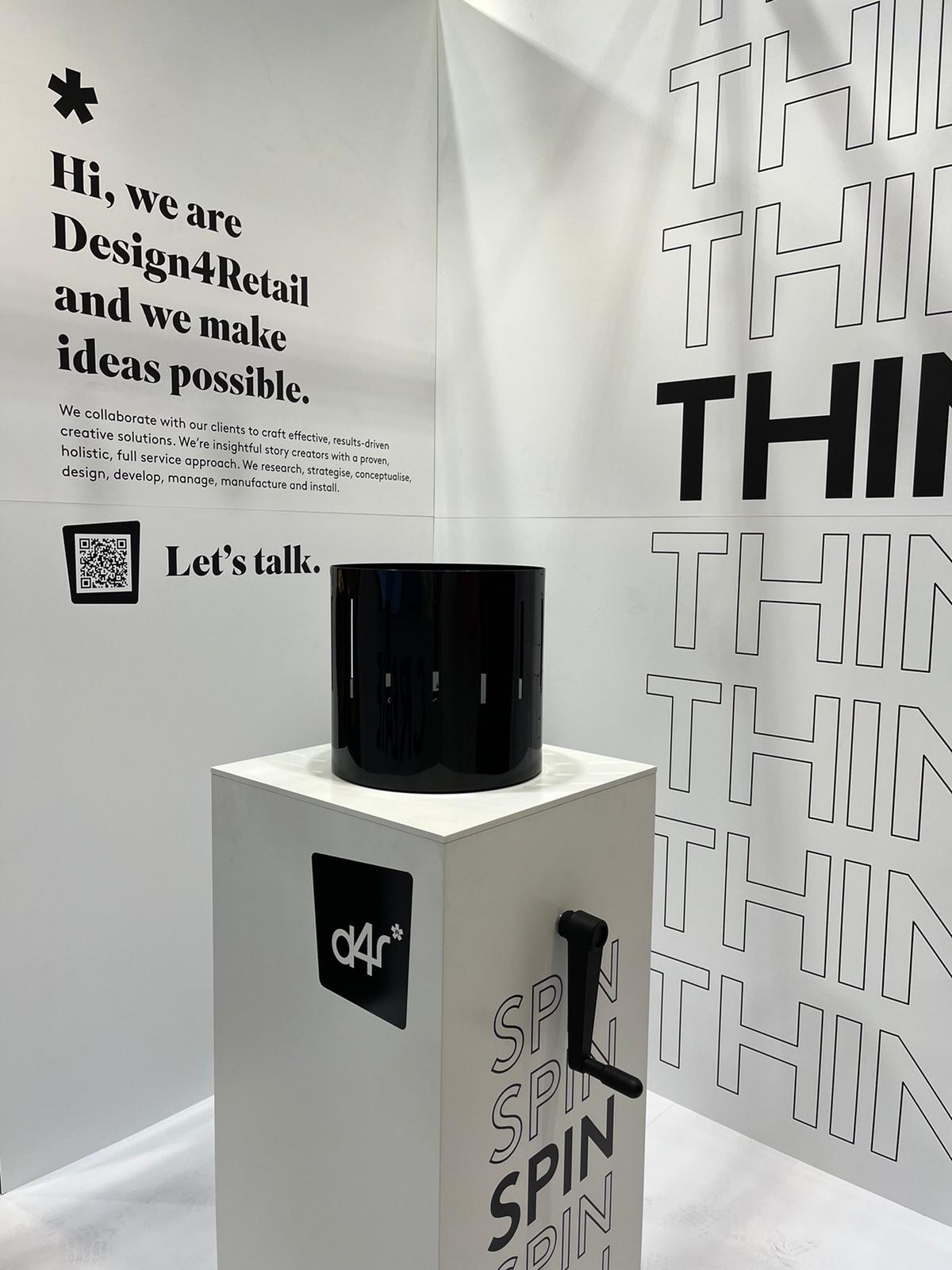 Our creative studio struck upon a design concept exercising a bold and colourful lenticular façade, contrasted by a minimalist black and white interior, complete with striking typography, as a tool for best-in-class brand communication. As exhibition visitors and press contacts from all-over circled the stand to capture the impressive façade, an interior drained of all-colour to contrast the booth’s external presentation and an interactive moment in the form of a central Zoetrope encouraged the crowds to venture inside. Inciting a feeling of nostalgia for many as they cranked the handle to ‘activate’ the illusion, our popular booth, or ‘Design Box’ as it would come to be called, was one of engagement, learning, function, and, most importantly, a reflection of the D4R brand.