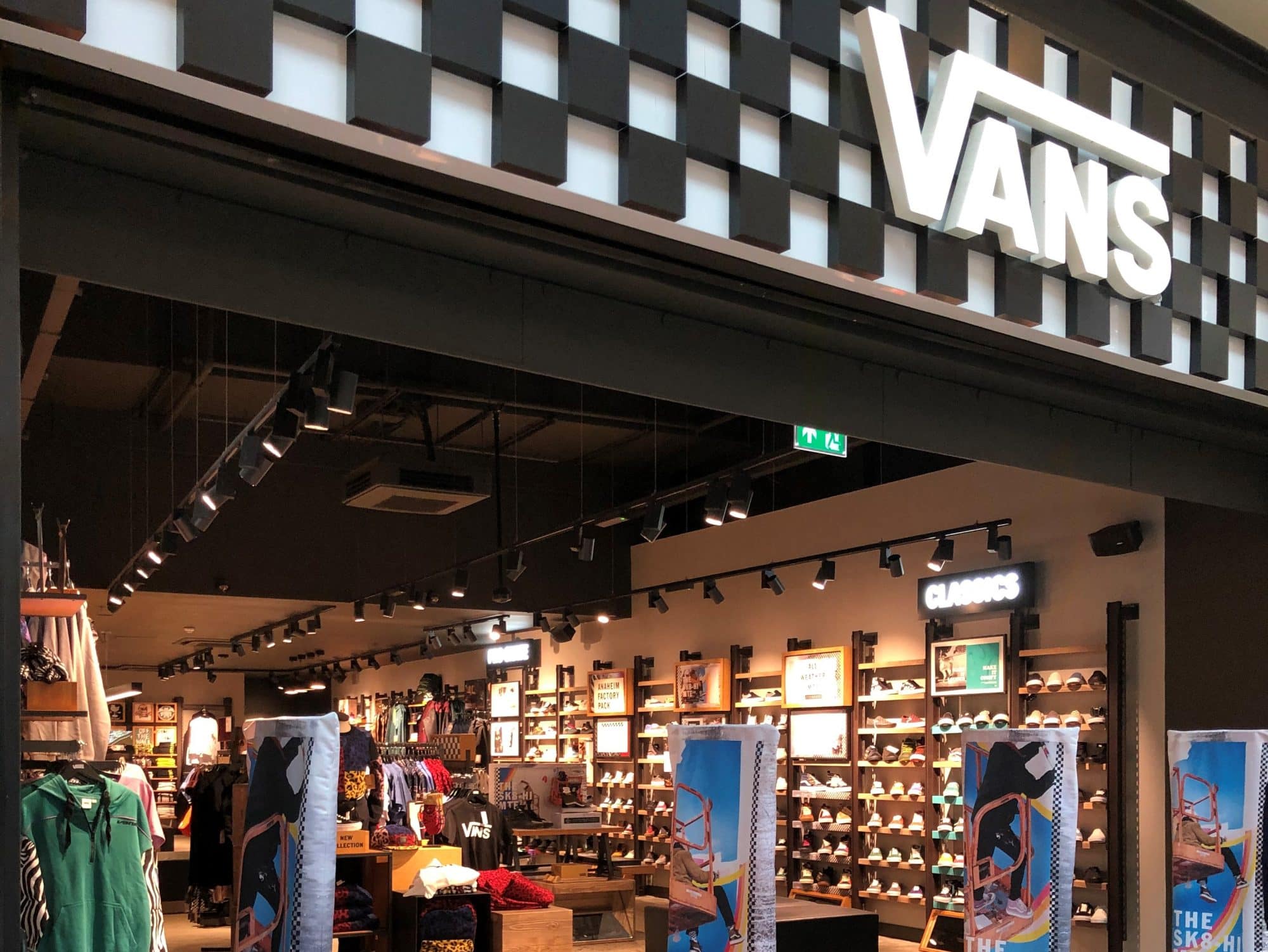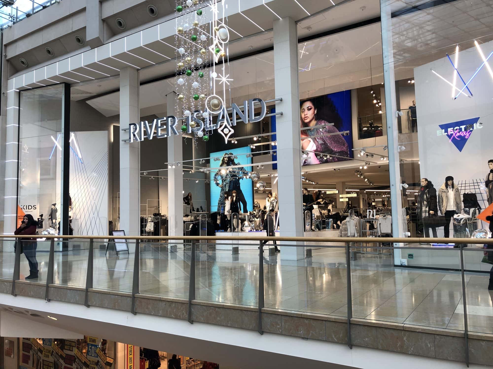 River Island’s enormous store front and Vans’ on-brand and typically edgy store design in the Bullring….