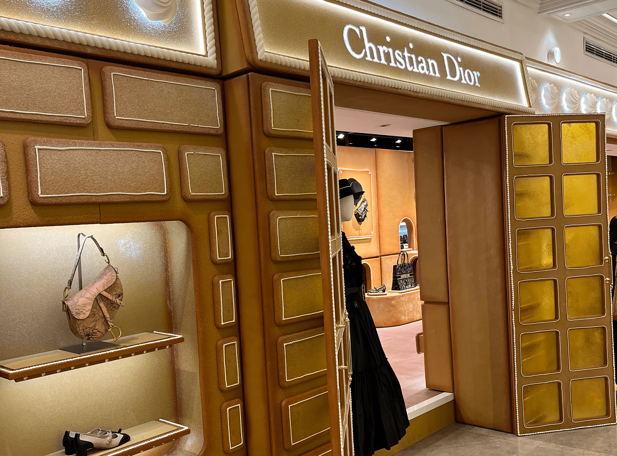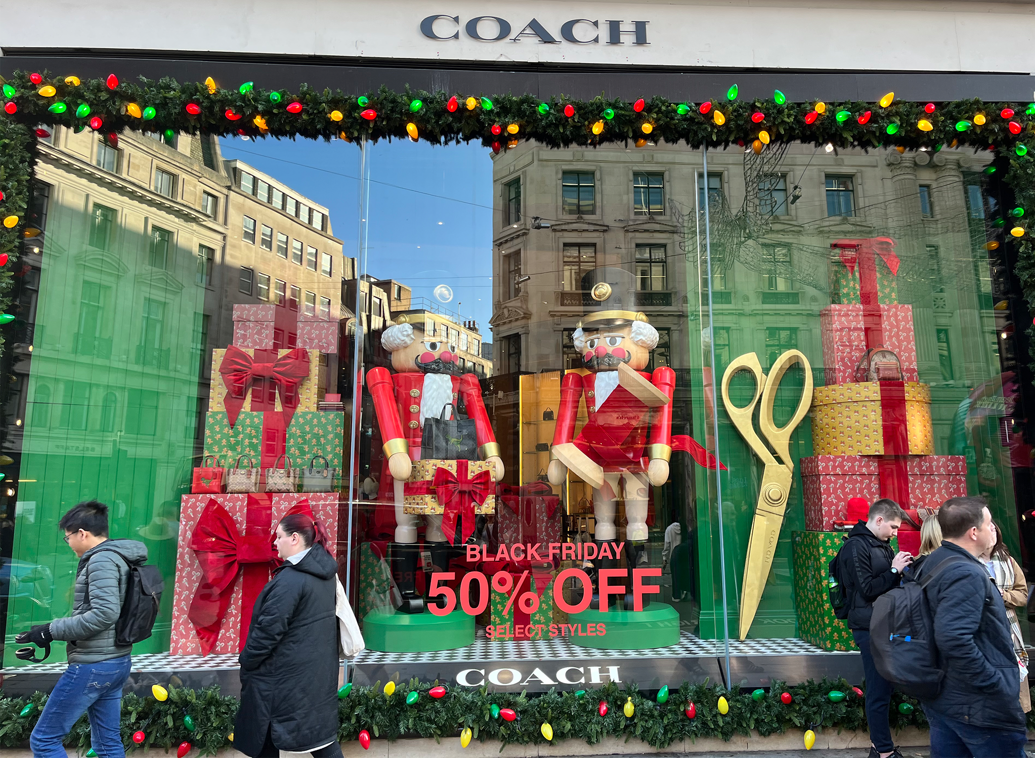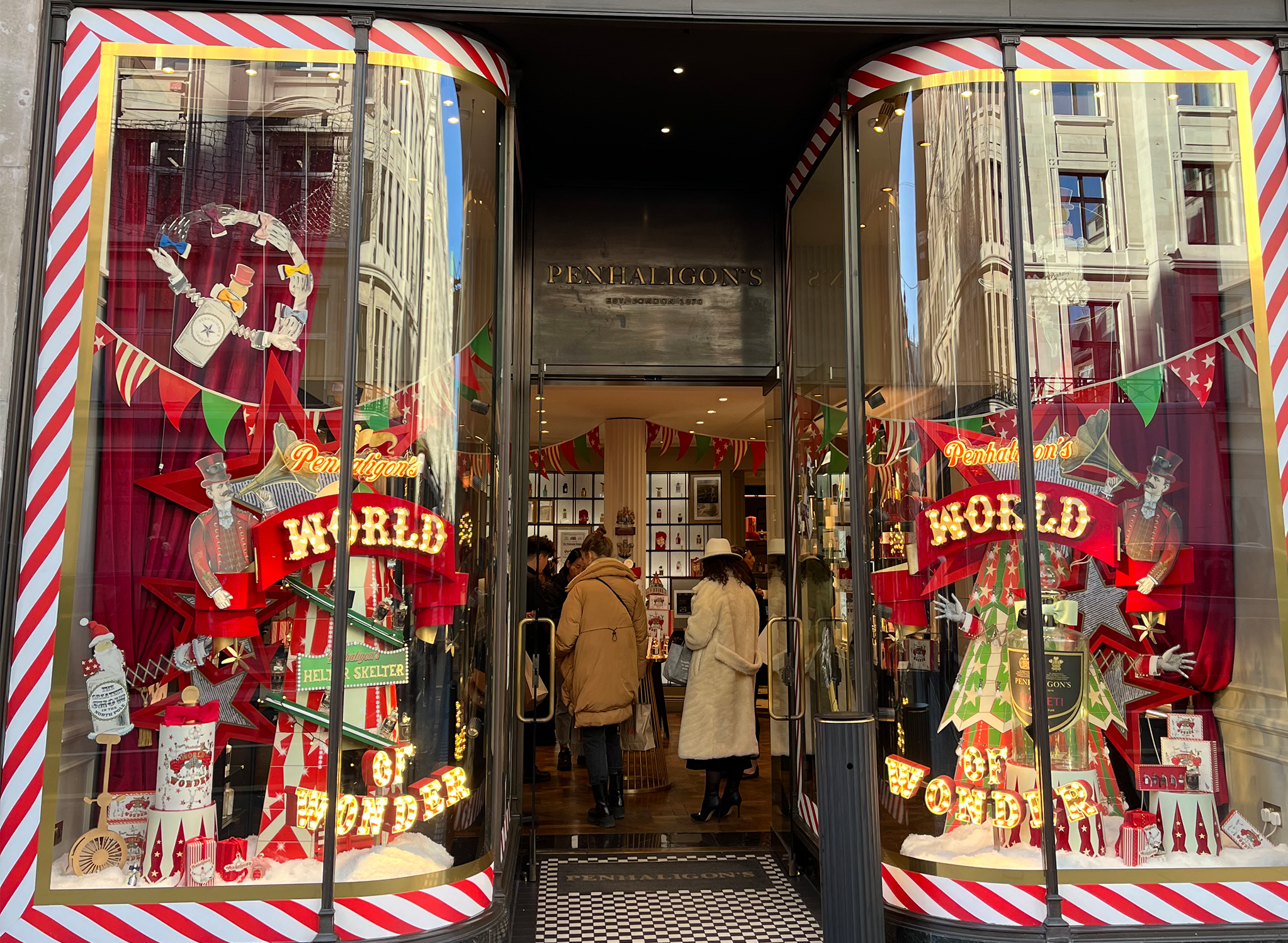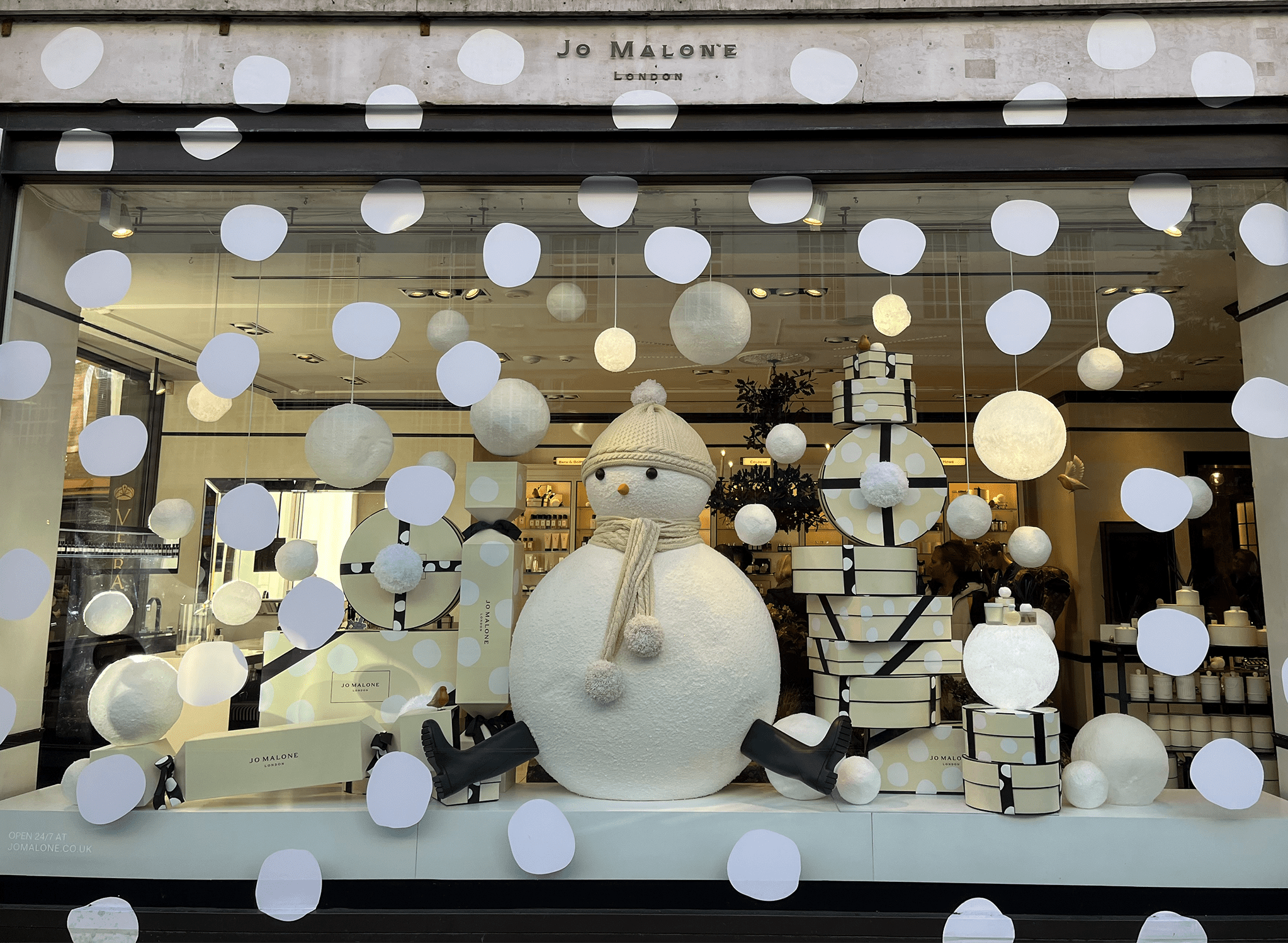The Christmas décor didn’t stop at the windows, it continued inside the store with several embellishments, including larger-than-life baubles and Christmas puddings, a glitzy selfie wall on the 4th floor within the “Christmas Shop”, and a revolving washing-line-inspired Christmas tree showcasing green garments – a nod to the well-known ‘Reselfridges’ campaign.