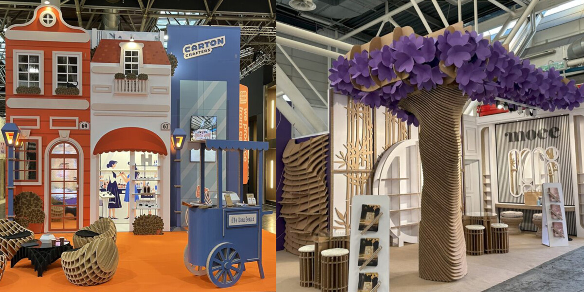 Carton Crafters proved that sustainability doesn’t have to be complicated. Their stand featured a massive, vibrant house structure in bright blues and oranges, inspired by European terrace architecture. What struck us most was the accessibility; they have engineered sturdy, reusable cardboard solutions, from seating to full structures, that practically anyone can assemble. Itās a lightweight, transportable, and highly customisable slot-in system that allows VM teams to build massive, impactful displays without needing specialist construction skills.