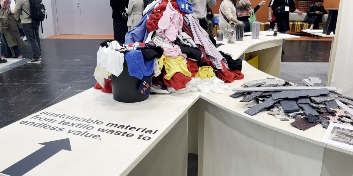 PANECO provided some of the most powerful visual storytelling at the fair. Their booth featured a 360-degree dome centred around an unsettling, massive pile of discarded clothes, a brutally honest look at the current textile waste landscape. They guided us through the transformation process: showing raw waste turning into fibres, and finally into their beautiful, upcycled material boards. It was a provocative display that used visual discomfort to highlight a circular economy solution for textile waste.