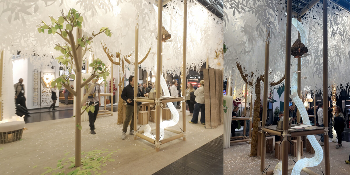 ProcƩdƩs ChƩnel created a breathtaking paper forest that felt like an architectural dream. Their display showcased the incredible versatility of paper, moving from delicate, translucent veils to dense, fire-resistant structures. By integrating lighting directly into these paper forms, they created a glowing, ethereal atmosphere that was deeply immersive. It was a masterclass in how paper architecture can be used to create high-end, fire-safe, and visually stimulating environments that feel organic and high-fashion at the same time.