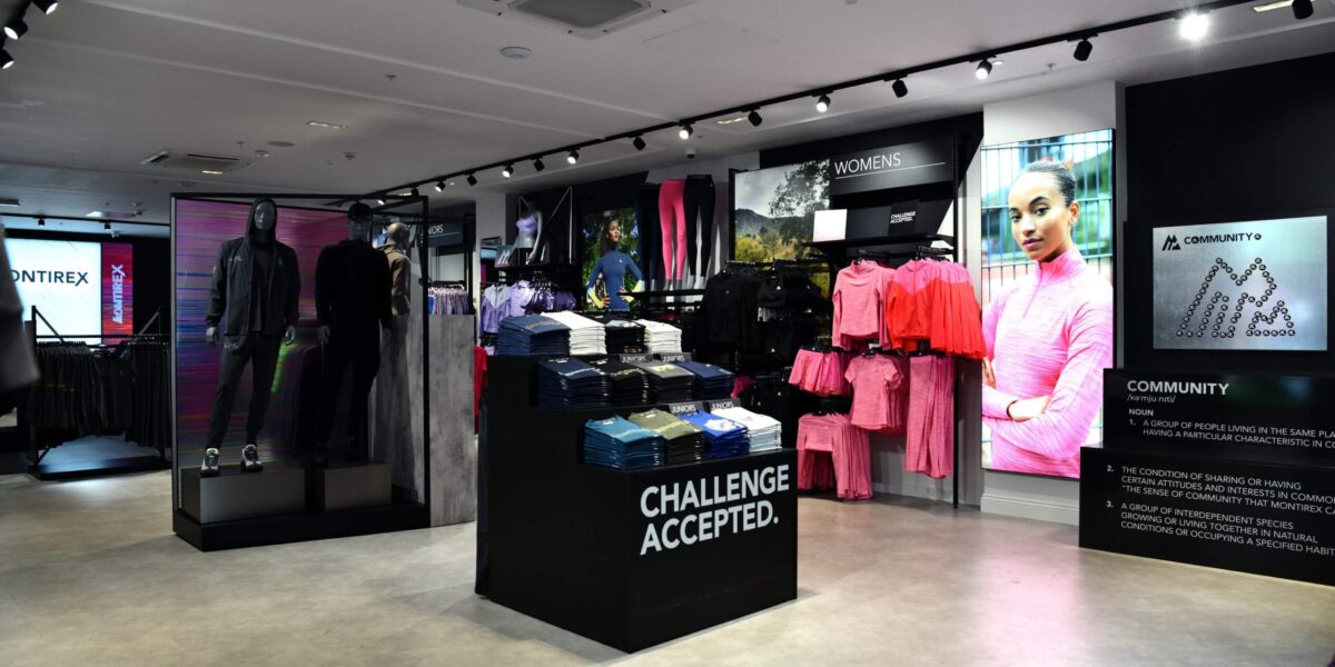 Following the success of the flagship, we are grateful for the ongoing partnership as we continue to realise the Montirex brand concept through new channels. Our subsequent work involves translating this high-impact branded space design into shop-in-shops within JD Sports.