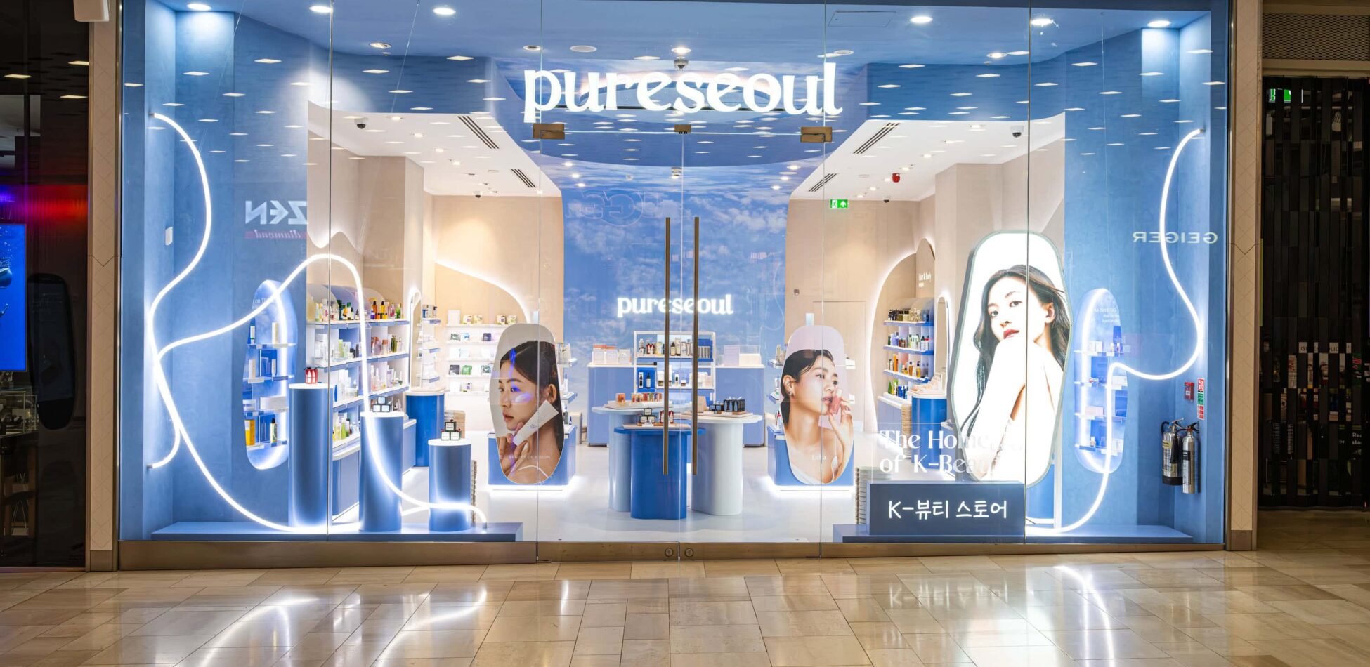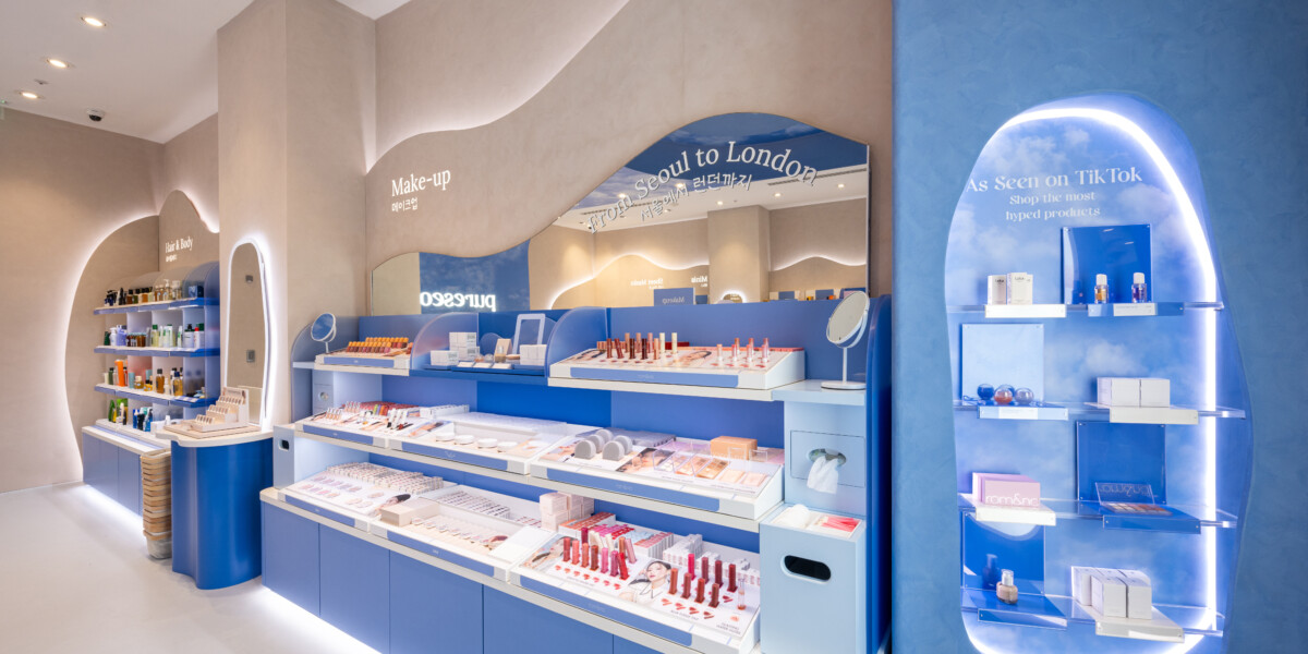 At Design4Retail, we were delighted to partner with pureseoul to develop a new store design concept for their exciting retail expansion journey, which began with their flagship location at Westfield, White City. Our core mission was to establish pureseoul as the definitive UK destination for K-Beauty expertise, celebrating an extensive range of brands in an environment that was both inviting and accessible. Our process was founded on a robust brand strategy that centred on community, inclusivity, and inspiring customers. We translated these pillars into the “Playful Sky-Scape” concept—a serene and welcoming space for both K-Beauty fans and curious newcomers.