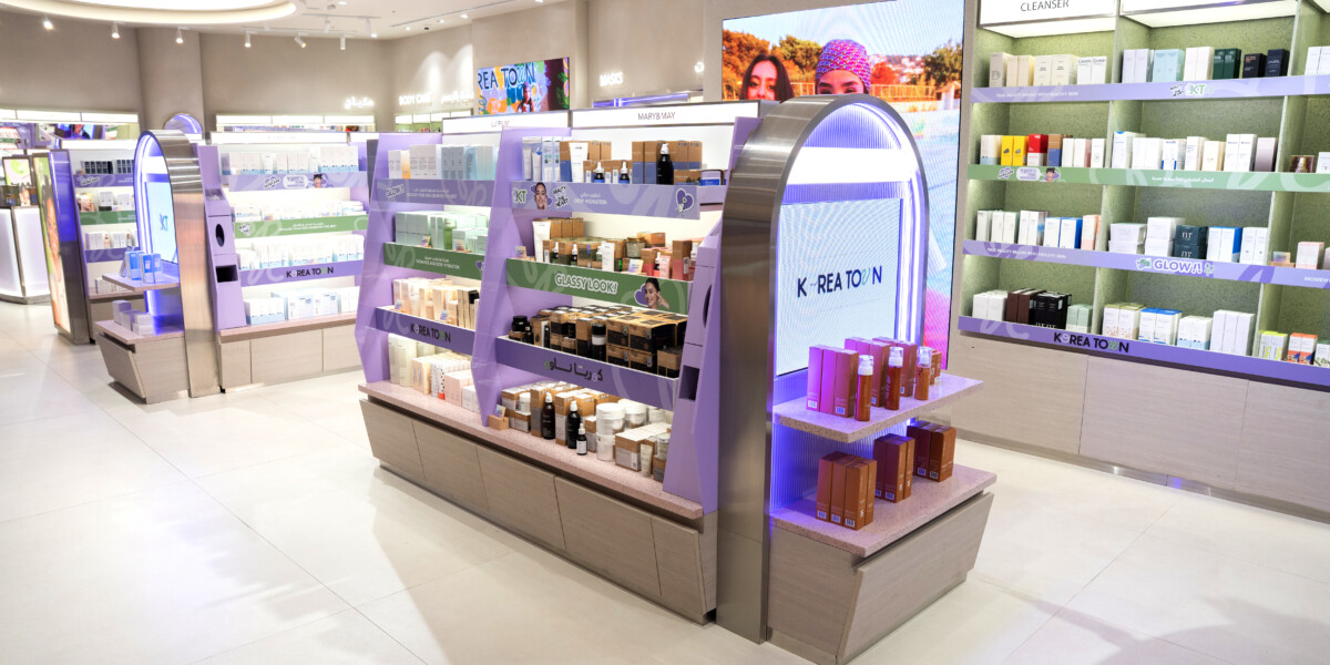 We partnered with Korea Town to execute a transformative rebrand and develop a new, scalable store design concept. The goal was to elevate the regional K-Beauty retailer into a premium, global contender, appealing specifically to Gen Z and Millennial audiences in the GCC (Gulf Cooperation Council) region, starting with a first flagship store in Kuwait. Our work began with intensive on-site analysis and market research, positioning Korea Town as “The Disruptive Curator” of K-Beauty. This insight-driven brand strategy guided the creation of a dynamic and immersive brand world that celebrated innovation, authenticity, and abundance.