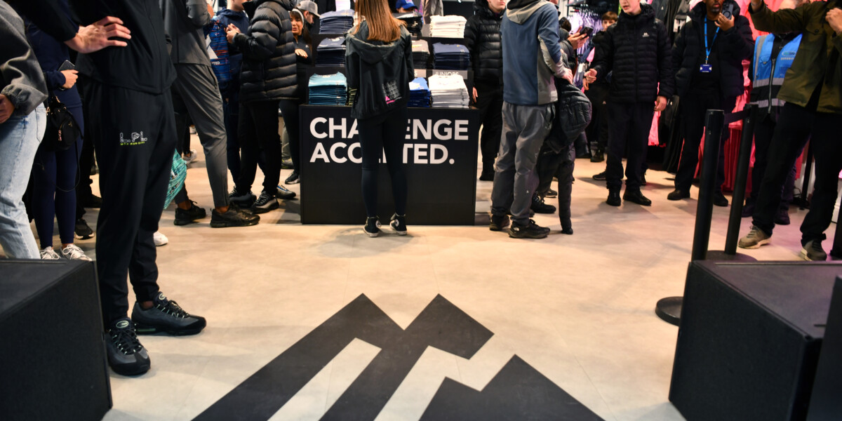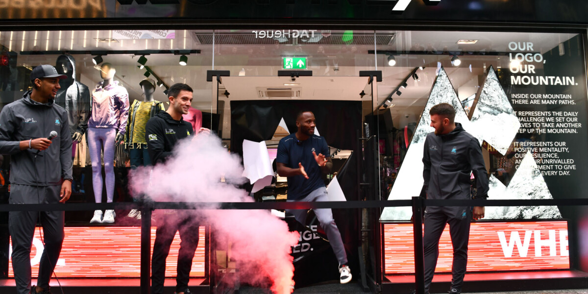 Featuring a prominent logo and digital window display at the store’s entrance, the façade showcased their iconic mountain symbol and its subtle significance. With an ascending track not only representing the intersection of sports, style and adventure but also the daily challenge they take on, it produced a striking introduction to the brand. Maintaining this emphasis of their persona, our holistic approach to graphic comms allowed us to apply motivational messaging across the store to visualise their positive mind-set and unrivalled commitment.