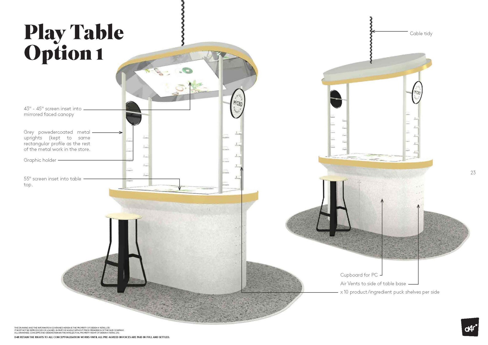 Within the core of the space is an interactive touch sensitive table allowing customers to learn about the blend of ingredients that make up Cannabotechās products, and enlighten themselves to the bodyās endocannabinoid system, delving into the efficacy of the unique M2CBD formula.