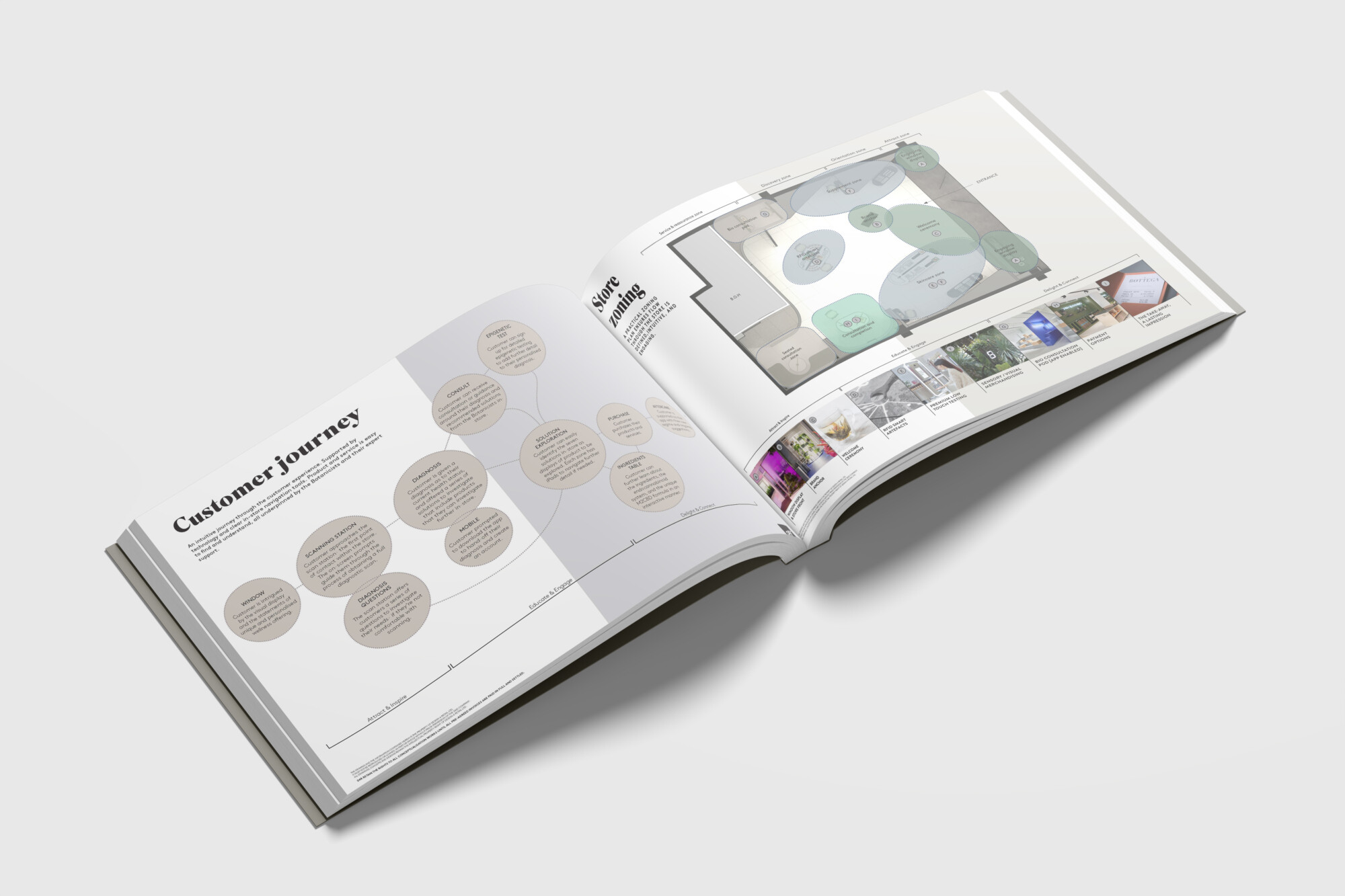 An intuitive pathway for customers was defined starting with aĀ window displayĀ that prefaces the brand, building intrigue, to a welcoming interactive moment via the āMy Being ā skin scannerā. This interactive touchpoint introduces shoppers to the brand, diagnosing and identifying products relevant to their needs. Staff stylised as āBotanacistsā offer expert instore advice and consultations, as well as epigenetic testing for in depth well-being regimens.