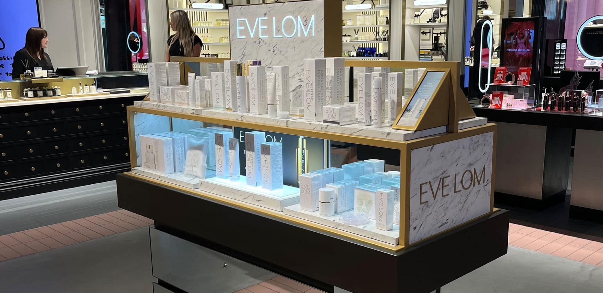 Whilst already a prominent brand in stores across the world, the luxury skincare brand, EVE LOM, was given the opportunity to launch its first branded counter in the iconic high-end retailer, Flannels. Following D4Rās close relationship with Flannels and our extensive experience supporting brands new to the retailer, we were introduced to EVE LOM to help deliver an exciting new counter at the Liverpool location.