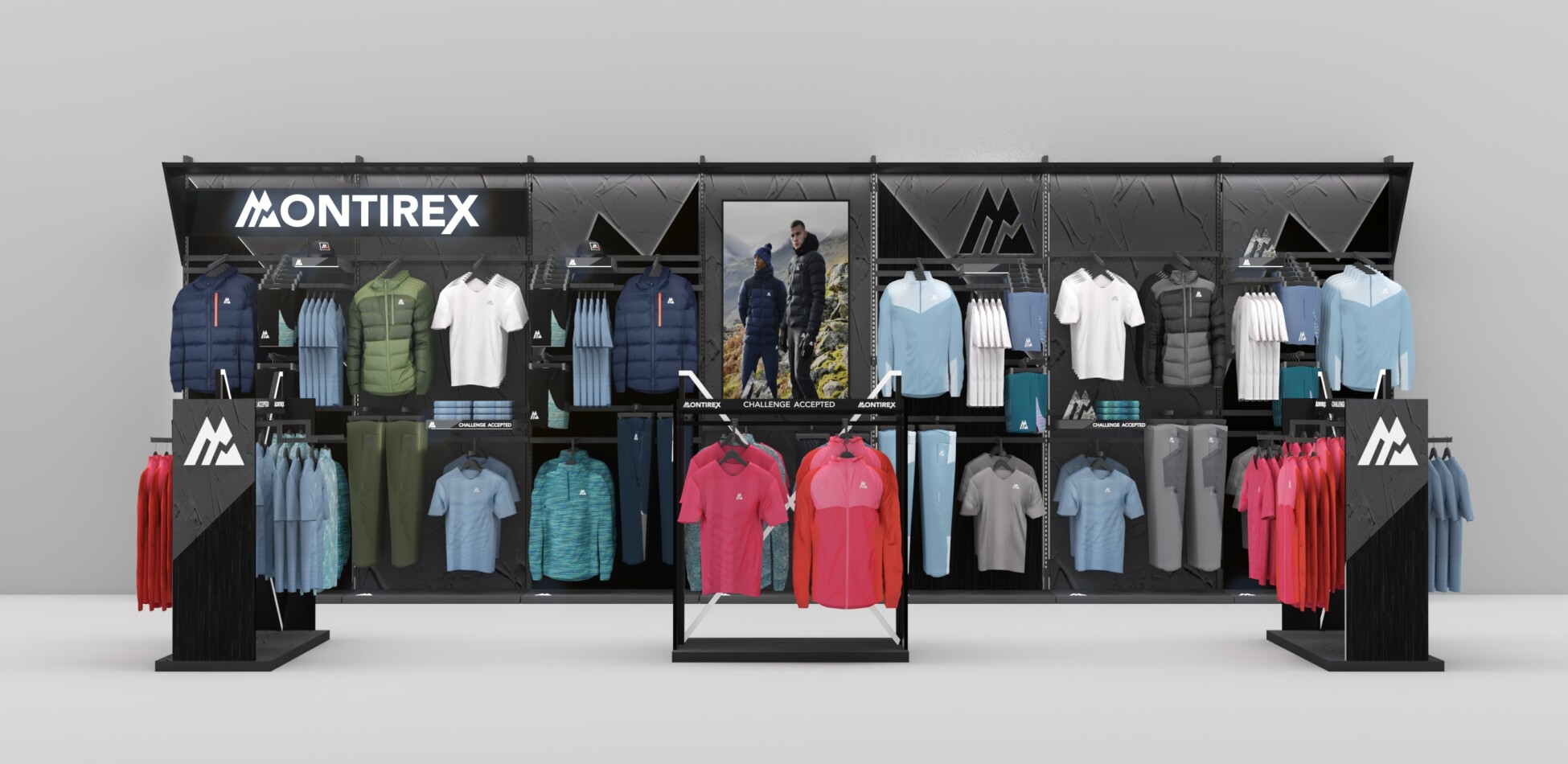At the heart of Montirexās identity lies a story, one of movement, growth, and ambition. Its iconic āMā logo, formed of peaks and valleys, isnāt just a mark, itās a manifesto. Every angle, every edge, represents a chapter of the brandās journey. Capturing this energy in-store became the creative foundation of the concept.