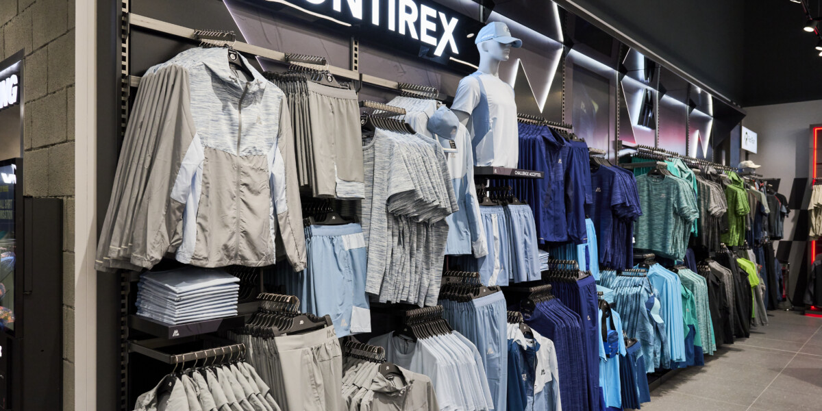 Montirex takes centre stage. The design features illuminated graphic panels etched with signature logo lines, digital screens for real-time campaign content, high-level framing, and custom-built brand statements that draw the eye. With seven bays of dedicated space, Montirex now claims the second-largest branded footprint in JD Trafford.