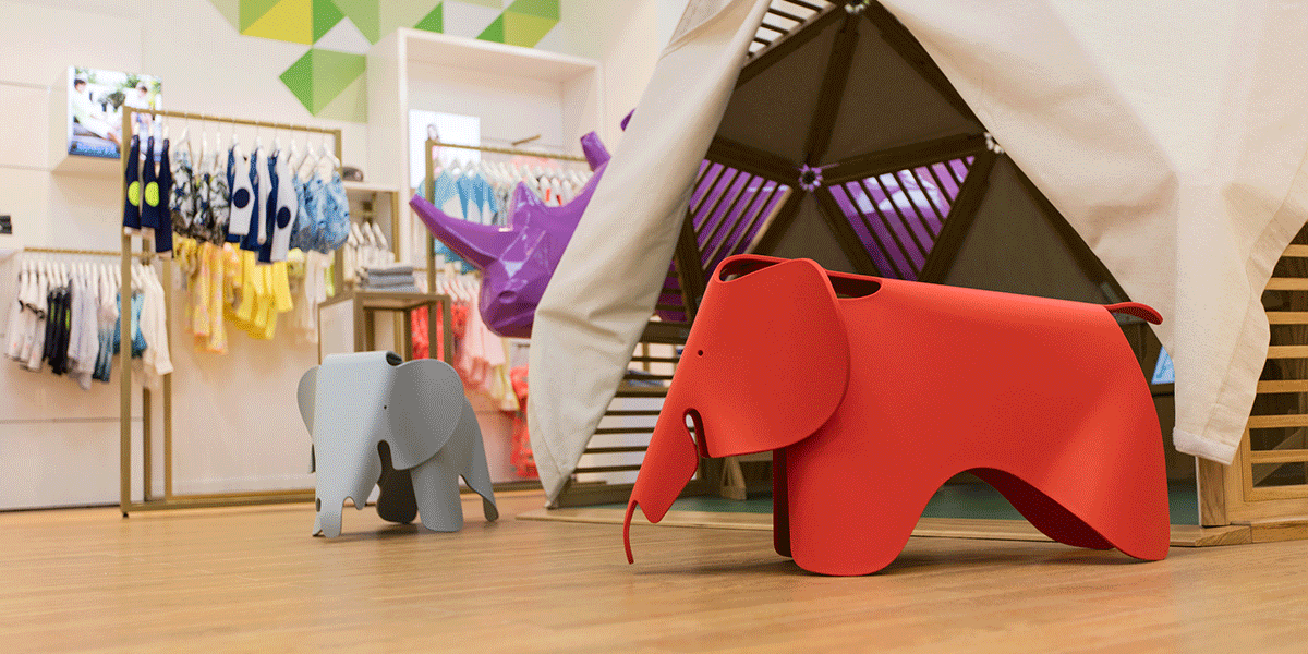 With a saturated marketplace for childrenās fashion, Savanna chose a different route to bring their luxury clothing to the famous Kuwait mall. Wanting to eradicate the traditional concept of premium clothing set against a stark background, they were inspired by not only the eco-system of the African Savanna but the visual and interactive-led opportunities of the geometric shapes and animals. Concept credit ā TRC