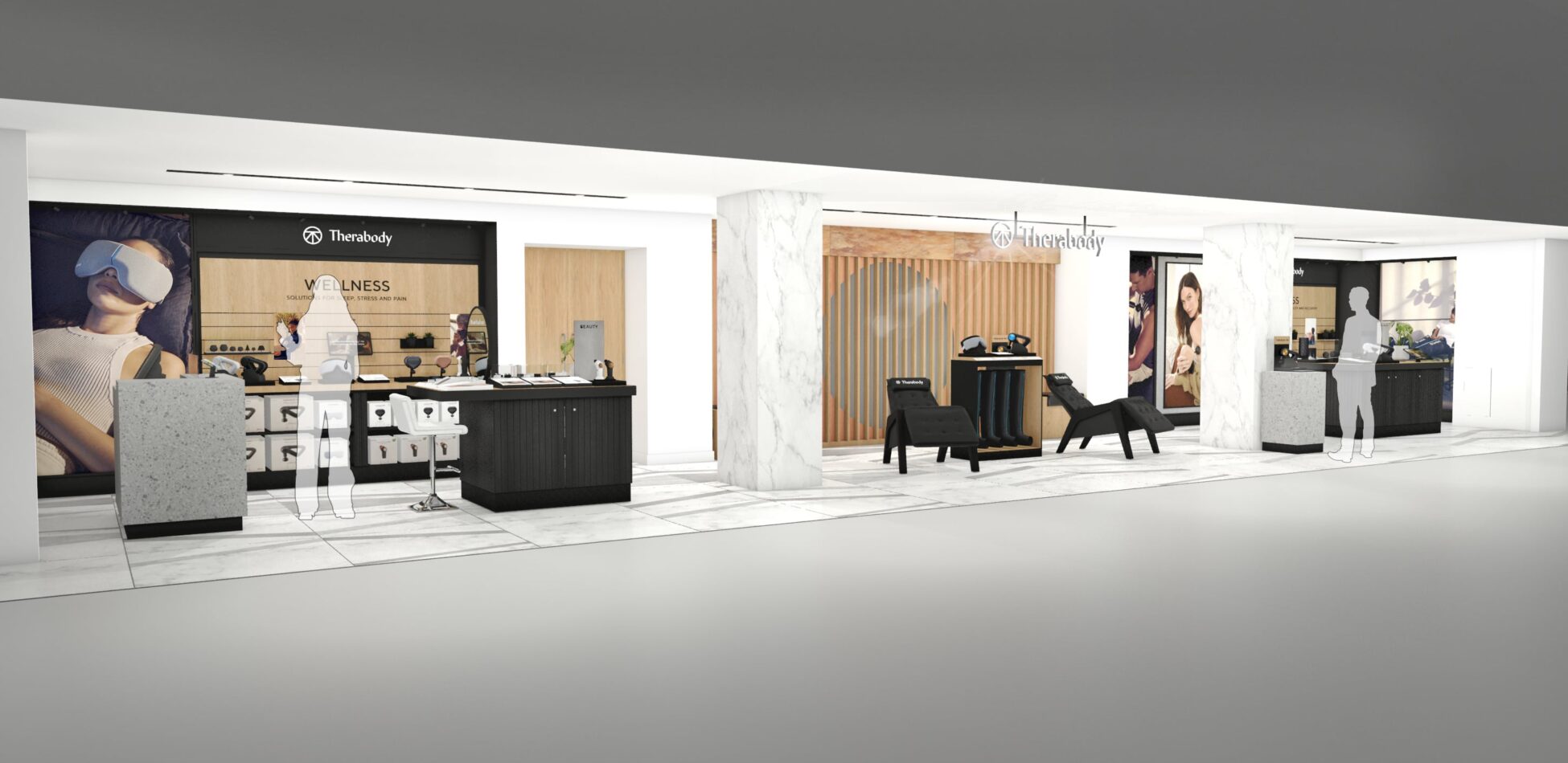 A key design focus for the shop-in-shop was to create clearly defined zones that created clear separation of each product category. Working within the constraints of the existing architectural footprintāand in close collaboration with Therabodyāthe final layout featured two dedicated product areas, seamlessly connected by a central experiential zone. Products were curated into three distinct spaces: Wellness, Performance, and Beauty, encompassing solutions for pain management, performance enhancement, sleep, and stress relief.